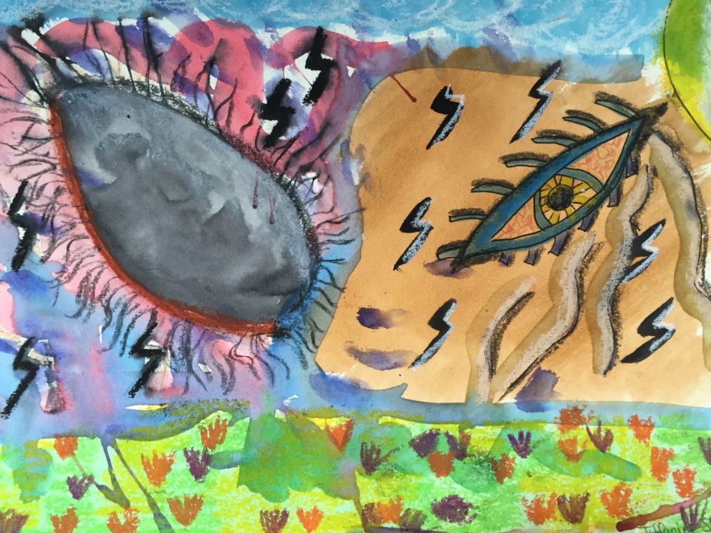 + Using creative means available to you such as pen, paper, recycled materials or your mobile phone camera/word processor create a response to the work. What feelings and thoughts does it inspire in you? How does that feeling translate into a color or a shape, for example?