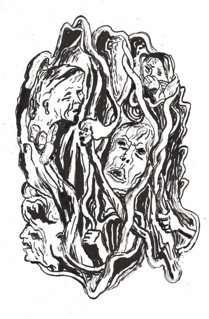 Twisted lives, struggle to get out, hands tightly holding on to ropes.