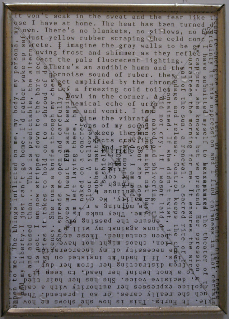 I feel like this piece shows the body and soul die slowly and mercilessly and rot in jail while the prisoners only joy is to get see the beautiful world, so nature.