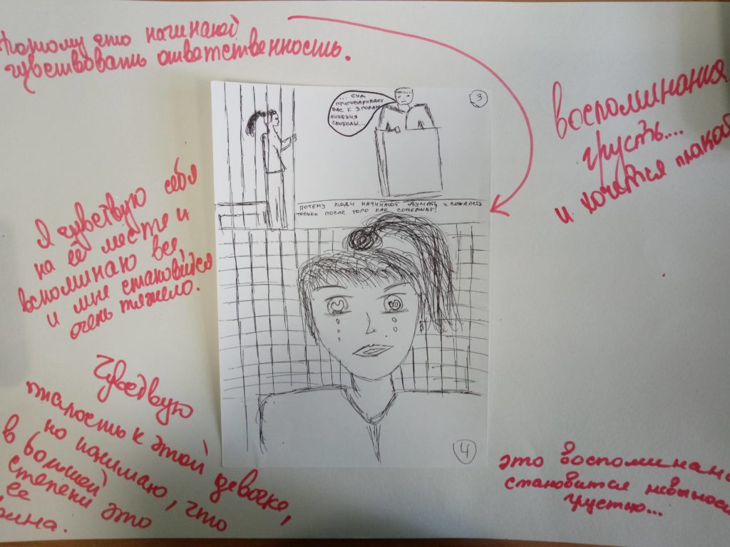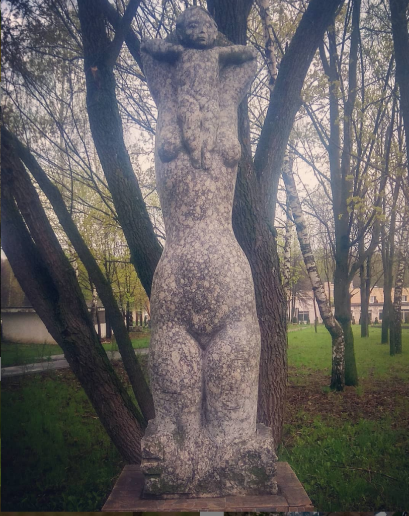 I was attracted by this poem that I could not read, with already a translation I could read, then I saw the statue of a woman with a child, by the same author Оксана Крутицкая (Oksana Krytickaya). So, my translation of the poem was influenced by the statue. And viceversa. I felt heavy and fluid at the same time while drawing the shape.I copied the words. Words worlds.