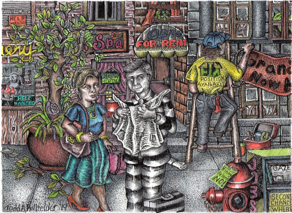 Remarkable! Every image is in transition, running, reaching for, the solidity of the strong buildings in the front! Progress has begun but there’s still work to be done!